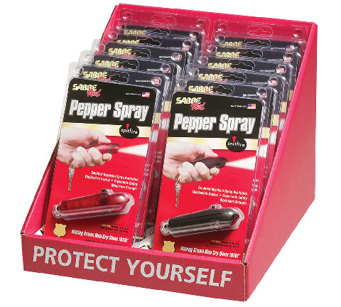 SABRE® SPITFIRE® PEPPER SPRAY COUNTER TOP DISPLAY •Display contains (12) assorted colors of Spitfire® pepper spray